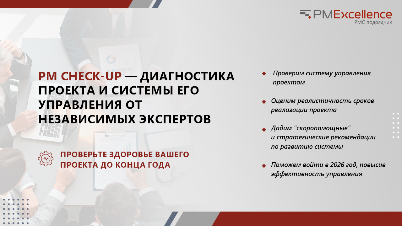 PM Check-up - всесторонняя оценка состояния проекта, проверка различных составных частей его реализации.